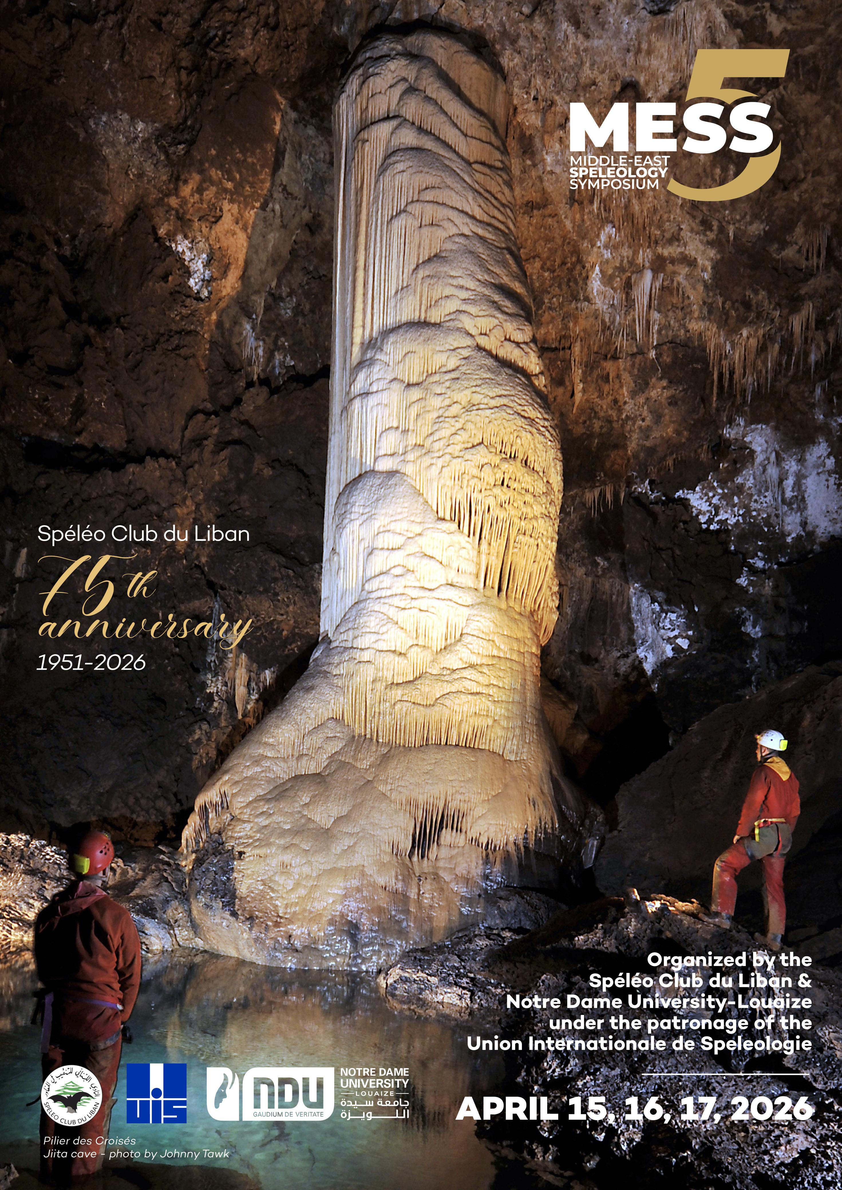 >>>>>>>>>>>We are delighted to invite you to the 5th Middle East Speleology Symposium (MESS5) , which will be held at the Notre Dame University (NDU) – Louaize in Lebanon on April 15, 16, 17 2026 .