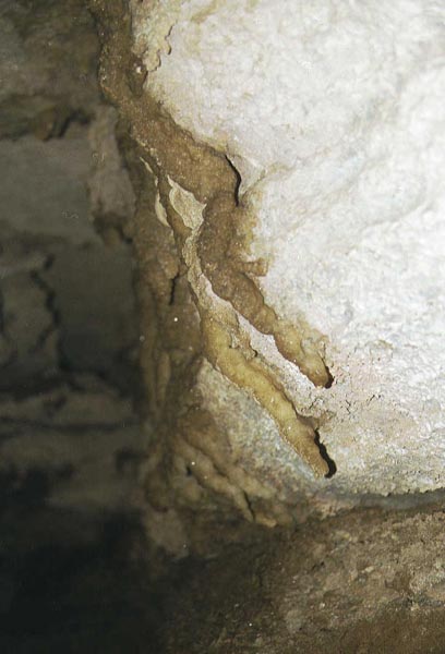 "гипсовые сталактиты" другой формы, растущие в месте интенсивного капежа