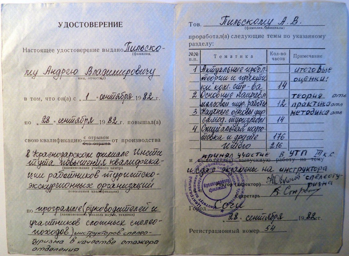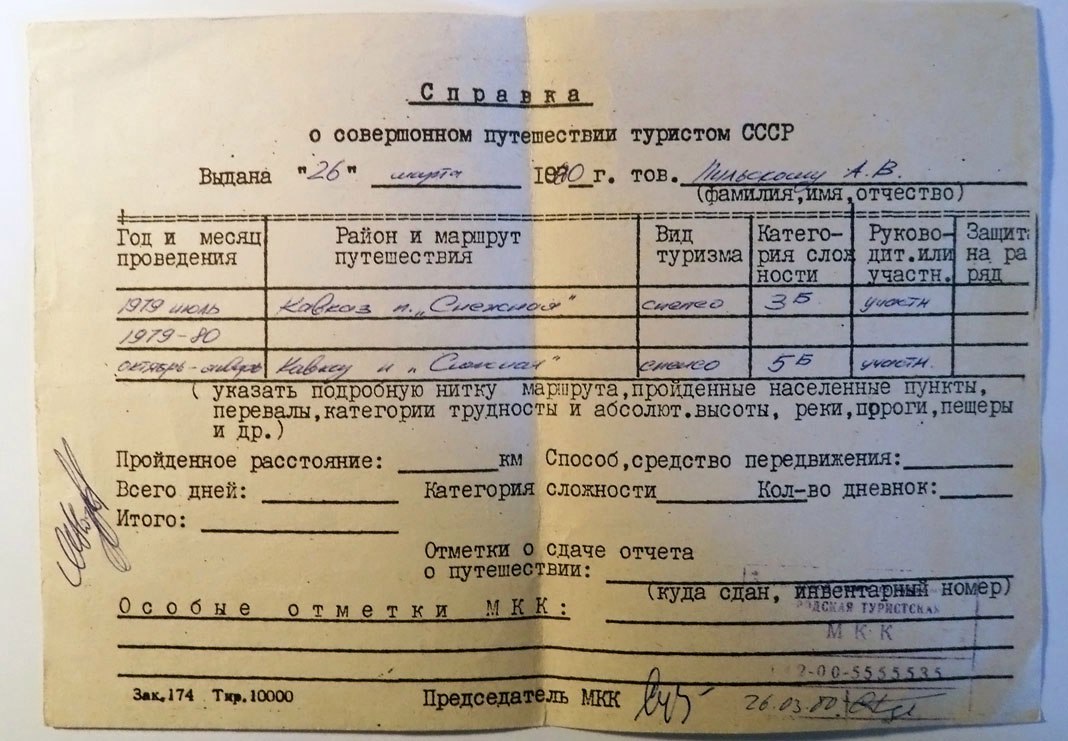 • Забавны твои рассуждения про то что для руководства 5-ой к.с. требовалось обучиться на ВТП. Это абсолютное враньё. Уж не надо мне, в прошлом члену МКК Москвы по спелеотуризму так откровенно врать.  А я лично собственно сначала прошел экстернат СИП и потом стажировался на звание инструктора на СТП (на Алеке). Справочку о руководстве 5Б прилагаю. Раритет. Прилагаю фотокопии подтверждающих мои слова документов. И жду от тебя хоть-что-то. О твоих выдающихся подвигах.